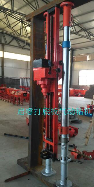 改裝后的氣動架柱式鉆機,鉆機主機由常規水平狀態變為垂直向下。機體主要由兩根頂緊立柱固定和支撐,除了能垂直向下打底板外,鉆機還能調節角度,傾角打底板也能實現。之前啟睿機械還為客戶改制過打頂板鉆機,礦上實際使用后反饋效果不錯。如果您對煤礦井下探放水、探排瓦斯鉆機有特別要求,歡迎聯系啟睿機械,技術人員給您出適合的方案。