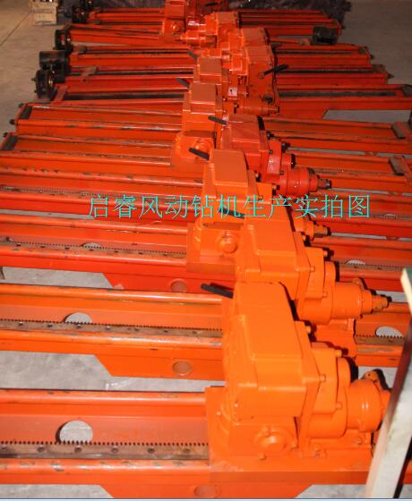 現在市場上常見的風動探水鉆機是架柱式的,型號為ZQJC,按照扭矩和功率不同有ZQJC-380/7.3S,ZQJC-650/11.0S,ZQJC-800/11.0S,ZQJC-1000/11.0S等諸多型號,啟睿機械生產的氣動架柱式鉆機,有十多個型號,扭矩從220N.m到1000N.m。