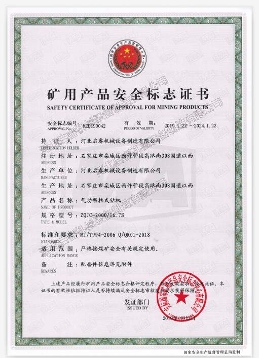 啟睿探水鉆機(jī),我們是“有證”的礦用設(shè)備