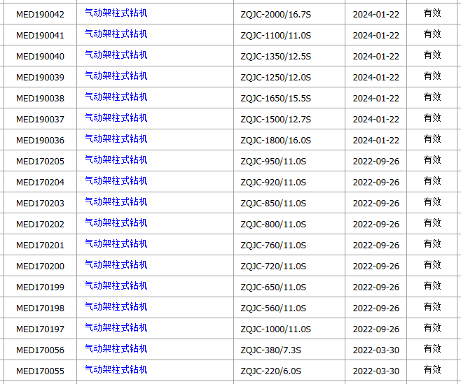 作為氣動(dòng)架柱式鉆機(jī)生產(chǎn)廠家,啟睿氣動(dòng)架柱式鉆機(jī)多18個(gè)型號,各型號均已通過安標(biāo)中心質(zhì)量審核并獲得安標(biāo)證書,礦上朋友可放心選用。