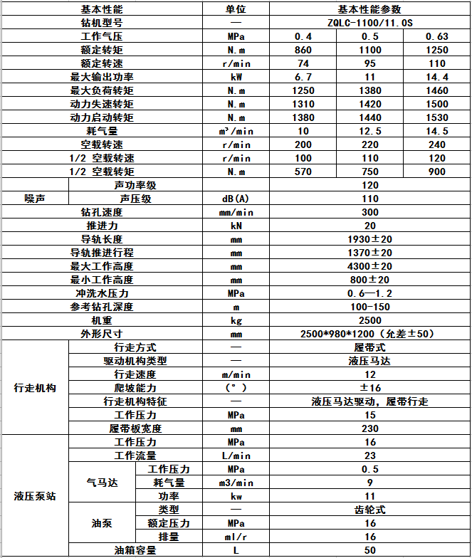 ZQLC-1100/11.0S氣動履帶式鉆機是我公司生產的新一代履帶行走式鉆機。是一種以壓縮空氣為動力,履帶行走式輕型深孔鉆機。適用于煤礦井下采用高效螺旋鉆桿和硬質合金鉆頭在煤層中的探水、探瓦斯及瓦斯抽放孔的施工。